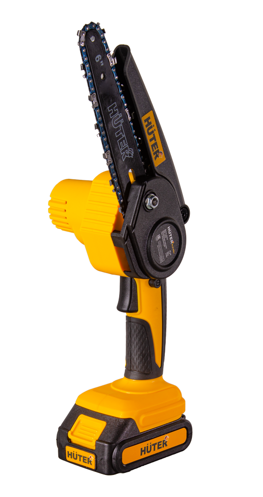 Аккумуляторная цепная пила удобно лежит в руке благодаря прорезиненной рукоятке. Для безопасности оператора предусмотрены защита от случайного пуска и защитный кожух цепи. В модели Huter ELS-20Li длина шины составляет 150 мм под цепь из 36 звеньев с шагом ?. Ее необходимо смазывать каждые 10 - 15 пропилов, т.к. в инструменте отсутствует автоматическая смазка цепи.