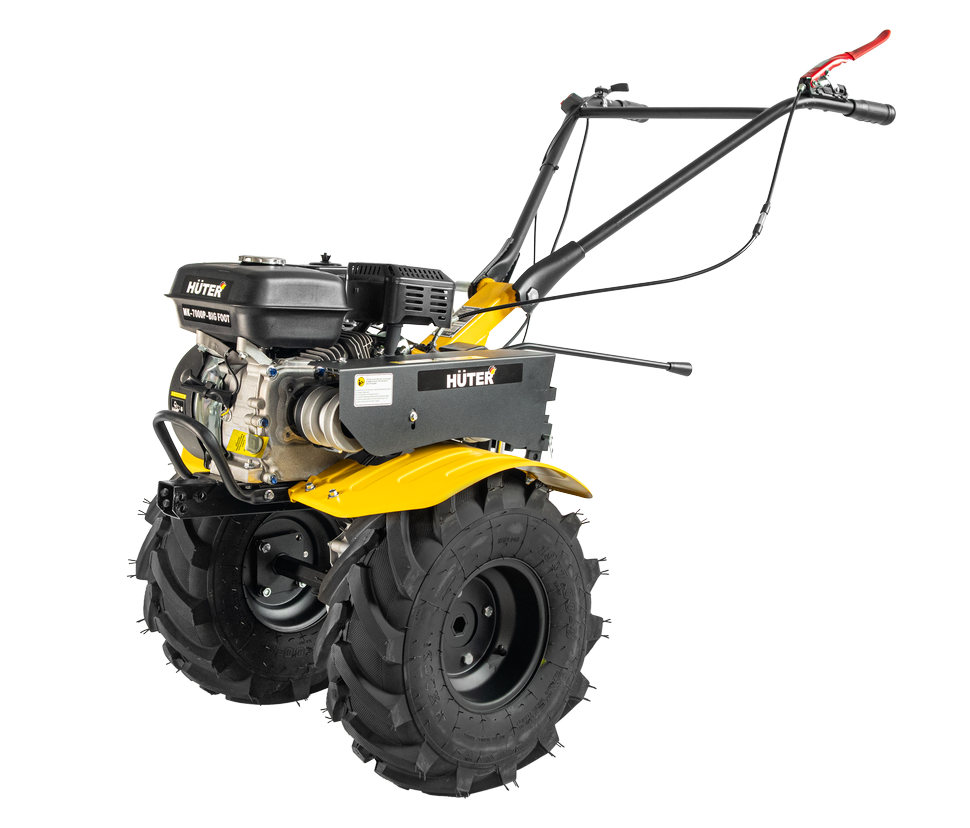 За один проход мотоблок способен обрабатывать полосу шириной до 100 см. Высокую производительность и качество культивации обеспечивают прочные металлические фрезы диаметром 30 см. Ширину и глубину обработки можно регулировать в зависимости от поставленных задач и особенностей выращиваемых культур. Большие колеса диаметром 19” гарантируют хорошую проходимость HUTER MK-7000P BIG FOOT даже по рыхлому грунту без грунтозацепов. Наличие задней передачи позволяет легко освободить мотоблок при застревании. Для удобства оператора органы управления расположены на рукоятке.