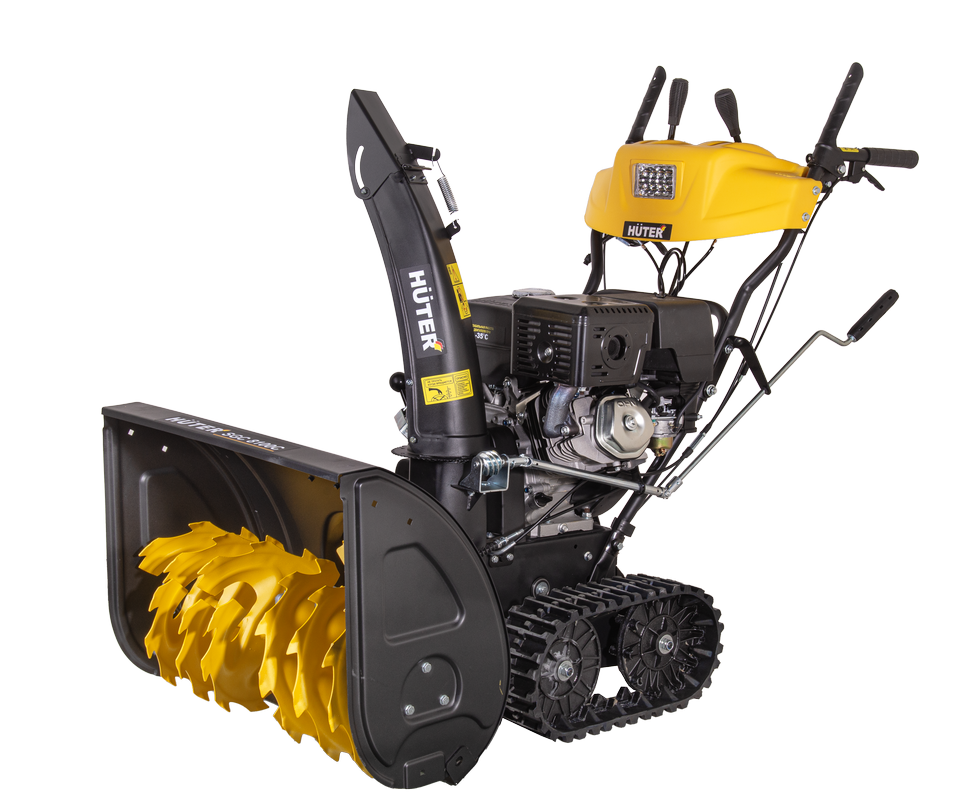 Бензиновый снегоуборщик Huter SGC 8100C на гусеницах отличается хорошей проходимостью по неровным поверхностям. Оборудован 4-х тактным двигателем мощностью 11 л.с. Рекомендуемое топливо: бензин АИ-92. Электростартер облегчает пуск двигателя при низких температурах. Разгрузочный желоб поворачивается при помощи специального рычага. Широкий диапазон скоростей позволяет выбрать наиболее удобный для оператора темп работы. Регулировка ограничительных полозьев предотвращает повреждения ковша. Агрегат используется коммунальными службами для уборки снега с больших территорий. Наличие фары позволяет работать в снегопад и после наступления темноты. Функция подогрева рукояток обеспечивает комфорт при эксплуатации агрегата.
