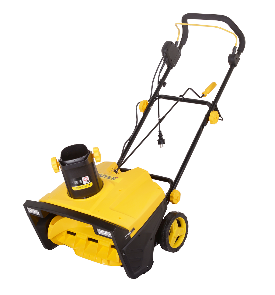 Устройство работает на базе электрического синхронного щеточного двигателя мощностью 2500 Вт со скоростью 3000 об./мин. Ширина захвата снежной массы составляет 50 см, высота – 30 см. Захваченный снег аккуратно отбрасывается в сторону. Корпус с ковшом установлен на металлическую раму и оснащен 2 широкими колесами. Модель несамоходная, однако удобная конструкция, наличие колес и длинной ручки обеспечивают комфортность ее передвижения оператором по относительно твердым поверхностям. Сборная металлическая ручка имеет оптимальную высоту, верхняя часть загнута и оснащена прорезиненным покрытием, исключающим скольжение и промерзание. Рычаг управления вынесен в верхнюю зону рукоятки в пределах досягаемости руки. Снегоуборщик электрический оснащен двумя фарами для удобства работы в темноте. Агрегат весит 15,8 кг, отличается компактными размерами, удобен в хранении и использовании на небольших и нестандартных по конфигурации участках.